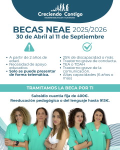 ¡Gestionamos por ti las Becas NEAE 2025/2026! En Clínica Creciendo Contigo, estamos comprometidos con el bienestar y desarrollo de quienes más lo necesitan. Por eso,